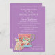Pretty bridal shower invitation done in lavender with a colourful tea cup, on the bottom left side and on the back. Personalize the white text to suit your event needs.