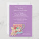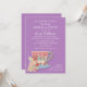 Jolie invitation de douche nuptiale faite en lavande avec une tasse de thé colorée, en bas à gauche et sur le dos. Personnalisez le texte blanc en fonction de vos besoins.