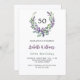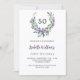 White background. A floral wreath made of lavender flowers and watercolored eucalyptus greenery. Personalize and add your name, age and party details.