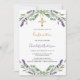 A white background decorated with lavender flowers and eucalyptus greenery. Personalize and a name and details.