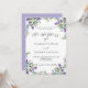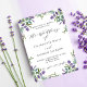 A white background decorated with lavender flowers and eucalyptus greenery. Personalize and your names and details.