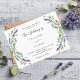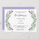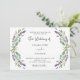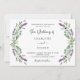 A white background decorated with lavender flowers and eucalyptus greenery. Personalize and your names and details.