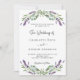A white background decorated with lavender flowers and eucalyptus greenery. Personalize and your names and details.