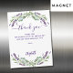 An elegant birthday magnetic thank you card. A white background, decorated with lavender, violet flowers and eucalyptus greenery. On front large hand lettered script and the text: Thank You.