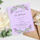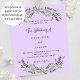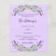 A violet background decorated with lavender flowers and eucalyptus greenery. Personalize and your names and details.