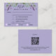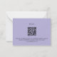 Un arrière - plan violet, du texte noir. Décoré de fleurs de lavande et de verdure d'eucalyptus. Personnalisez et ajoutez la réponse par date et sélections de menu. Retour : arrière - plan violet. Ajoutez l'URL de votre site Web mariage au code QR pour plus de détails