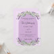 A pink background and a purple arch frame decorated with lavender flowers and eucalyptus greenery. Personalize and your names and details.