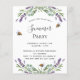 A white background decorated with lavender flowers, eucalyptus greenery and bees. Personalize and your name and details.