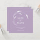Announce your engagement with these wedding save the date templates. This design features lavender line art in with a mix of classic and script typography in white over an purple background. All the colours can be customized to suite your wedding colour scheme. Use the template fields to personalize with your name and wedding date. Order printed cards or a digital save the date download. To see the matching wedding stationery suite visit www.zazzle.com/dotellabelle