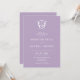Announce your celebration in style with these classy wedding shower invitations for couples, featuring a timeless monogram crest in white over a lavender purple background. The modern yet simple design showcases elegant script calligraphy, creating a refined and sophisticated look.