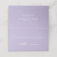 A simple wedding place card for a lavender wedding colour scheme. It is just white lines and calligraphy on a lavender (light purple) background.