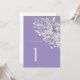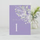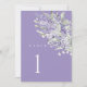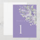 This lavender table number card features soft watercolor florals in layered lavender tones with sage green foliage, creating an elegant and refined look for wedding reception tables.
