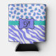 Have fun with this cooler to keep your beverage drink cold. Enjoy this sophisticated and stylish combination of zebra stripe skin and leopard or cheetah skin personalized with your monogram initial. This popular and trendy lavender periwinkle purple and white zebra and leopard print design pattern is available in several colour combinations. A periwinkle emblem in on a turquoise teal blue or aqua stripe creates a personalization area for your monogram or a name. This is fully customizable and is available on several coordinating products in this store.