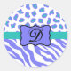 Lavender White Zebra Leopard Skin Monogram Initial Classic Round Sticker