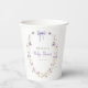 Our baby shower paper cups feature a lavender watercolor bow and wildflower wreath - a beautiful way to decorate at your baby shower or event.