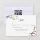 Announce your day with this Lavender Wildflower Garden Romantic Wedding response card with a QR code, featuring delicate watercolor florals on a light lavender purple background. Perfect for a spring or summer garden wedding, this beautiful design offers a whimsical and natural aesthetic. This romantic invitation is fully customizable and sets a lovely, soft tone for your celebration. Created by Simply Farmhouse Press.
