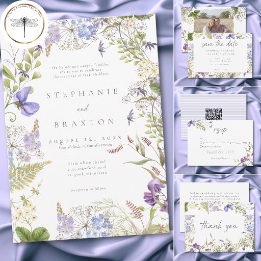 Lavender Wildflower Garden White Romantic Wedding Invitation