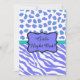Customisez cette invitation sophistiquée et colorée à fêter avec une soirée "Girls Night Out". Le design associe lavande périwinkle violet et rayures zèbres blanches et peaux de léopard ou de guépard pour un design moderne et tendance. Un emblème de lavande violet surligné en noir sur une barre bleu turquoise turquoise et crée une zone de personnalisation, avec les mots personnalisables "Girls Night Out" qui peuvent être customisés à d'autres mots. Le verso de l'invitation comprend des champs pour toutes vos informations pour votre parti. Vous pouvez facilement modifier et supprimer des champs si nécessaire. Les couleurs sont la lavande périvent, le blanc, le bleu turquoise turquoise, le noir et le vert citron. Peaux d'animaux sauvages pour le design graphique est un art chaud et tendance design, et est extrêmement populaire de la mode à la décoration maison. Cette collection sophistiquée de zèbres et d'empreintes de léopard est l'une des nombreuses combinaisons de couleurs disponibles pour votre choix d'invitations et de coordonnées avec d'autres produits pour une soirée élégante.