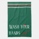 "Lavez-vous les mains de votre animal sale" serviette de cuisine verte, rouge et blanche