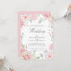 A beautifully romantic wedding invitation in classic pink and green. This design features a stunning pink watercolor framed border of roses, green leaves and touches of faux glitter. Your wedding details are in sophisticated grey, and the reverse is in light pink. This invitation is perfect for a spring or summer wedding.