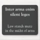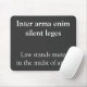 A dark gray mousemat with a latin quote and the english translation underneath. "Law stands mute in the midst of arms" is a quote by the Roman lawyer Cicero. It basically means that when a war is on, legal matters and the legality of certain actions take a back seat.