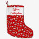 Fun double-sided red and white Christmas stocking printed with a pattern of handcuffs. Ideal for law enforcement, police, bail bondsmen, and bounty hunters. Customise by changing the name (front and back) to suit your requirements.