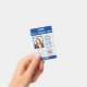 This blue and white photo ID badge features a law enforcement star embedded deep within the design. A barcode is placed at the front bottom in case your business uses scanning for entrance to sensitive areas. Tighten security with these employee identification badges in a crisp blue and white design that allows room for your logo both front and back. Also on the back is your address and phone number in case a badge is lost. Areas that may not apply to your individual organization are easily deleted.