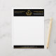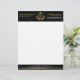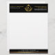 Elegant professional Law Firm Letterhead featuring law logo in gold on a black background. Personalize with your details in trendy block lettering. Click customize further to edit this template. All text can be customized.
