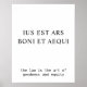 A poster featuring the quote "ius est ars boni et aequi" which translates to "the law is the art of goodness and equity". An inspirational law quote perfect for law firm décor. A great gift for lawyers, attorneys, barristers, solicitors, judges, legal practitioners, paralegals and law enforcement officers.