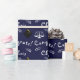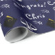 Creative law school graduation gift wrap and grad party decoration featuring navy blue background. To personalize edit text to add graduate's name.