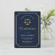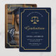 The design combines a structured scales of justice motif with an elegant ticket inspired border to frame the announcement while allowing the graduate photo to remain visible and balanced. Navy tones anchor the legal theme while gold accents add distinction without overpowering the content. This announcement coordinates with matching invitations, envelope liners, address labels and seals for a unified law graduation stationery suite.