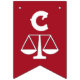 Creative law school graduation congratulations party decor featuring scales of justice on red background new grad, lawyer, attorney or honorable judge.