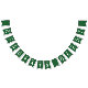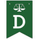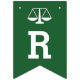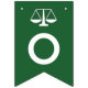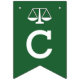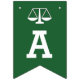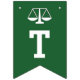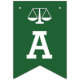 Lawyer or law school grad congratulations decor featuring scales of justice on green background.