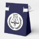 Creative lawyer party favours featuring scales of justice personified and funny quote.