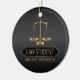 Law Student ornaments. Scale of Justice in Black and Gold A great gift for a law student. 100% Customizable. Design is done in layers so you can be move, resize, delete or change any of the graphics or text to meet your need. There is Ready to Fill in the box(es) or you can Click on the CUSTOMIZE button or CLICK TO CUSTOMIZE FURTHER area to make changes easily. Made with high resolution vector and/or digital graphics for a professional print. NOTE: (THIS IS A PRINT. All zazzle product designs are "prints" unless otherwise stated under "About This Product" area) The design will be printed EXACTLY like you see it on the screen and on the product...so please make sure when you do your changes on the resizing of any of the graphics or text that it fits in the areas correctly and that your spelling and wording is how you like it to be in size, colour and font. If you have any questions about the DESIGN please contact me at homesweethome63@comcast.net. All other questions (shipping, refund, the printing, the product, etc...) please contact Zazzle or the Maker directly. Thank you for the support and stopping by my store - LetsUDesignIt