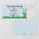 Are you starting up a lawn and garden care business? Then, this card is for you! It features a graphic of green  grass and plants over a pale blue background. Everything on the front is editable.