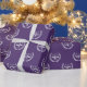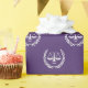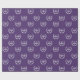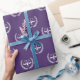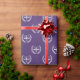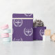 Creative lawyer gift wrap featuring happy scales of justice pattern on a purple background.
