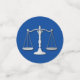 Blue and silver lawyer graduation design is modern and elegant with a scale and confetti border. Great for a law school graduate!