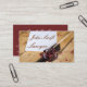 Photo of the inkstand, quill and a white sheet of paper on a wooden table. Name and trade on the front, funny text on the back. Fully customizable business card. You can change or delete everything, just be creative. And have fun with this unique, one-of-a-kind business card template.