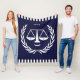 Creative lawyer blanket featuring scales of justice humour. Edit text to add law school grad, lawyer, attorney or judge's name.