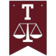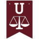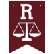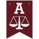 Lawyer law school graduation congratulations party decor featuring Scales of Justice on a maroon background.