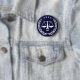 Creative lawyer or law school graduate pin, featuring cartoon scales of justice. To customize edit text to add year.