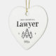 First Christmas as a lawyer heart ornament for a new job after a graduation from law school. Elegant porcelain ceramic holiday ornaments in white with black lettering. Featuring Christmas trees and stars.