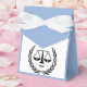 Humourous lawyer party favours gift featuring creative scales of justice personified and funny quote.