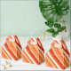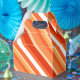 Layered, 3-d look, diagonal stripes in multiple shades of orange, from pale sherbet orange to deep mandarin, accented with white
