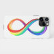 Bright symbol of infinity from plastic layers of red, yellow, green, turquoise, blue and purple saturated colours on white background.