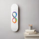 Bright symbol of infinity from plastic layers of red, yellow, green, turquoise, blue and purple saturated colours on white background.