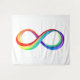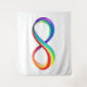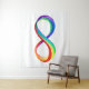 Bright symbol of infinity from plastic layers of red, yellow, green, turquoise, blue and purple saturated colours on white background.