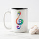 Musical key drawn from multicolored layers of rainbow colours on white background.