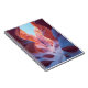 This surreal notebook design captures a deconstructed desert canyon where rock layers peel away like pages of a cosmic book. Floating mid-air, these pages reveal holographic visions of futuristic cities and forests, rendered in clean, digital wireframes. The base landscape is sharply realistic—dry, rugged, and sun-warmed—while the floating elements glow in electric blues and purples. A dynamic contrast of nature and technology, this artwork explores the idea of reality layered over reality. Perfect for creatives, dreamers, and futurists. Keywords: surreal canyon, abstract notebook, floating pages, holographic cities, wireframe forests, desert textures, layered reality, futuristic landscape, conceptual art, electric palette.